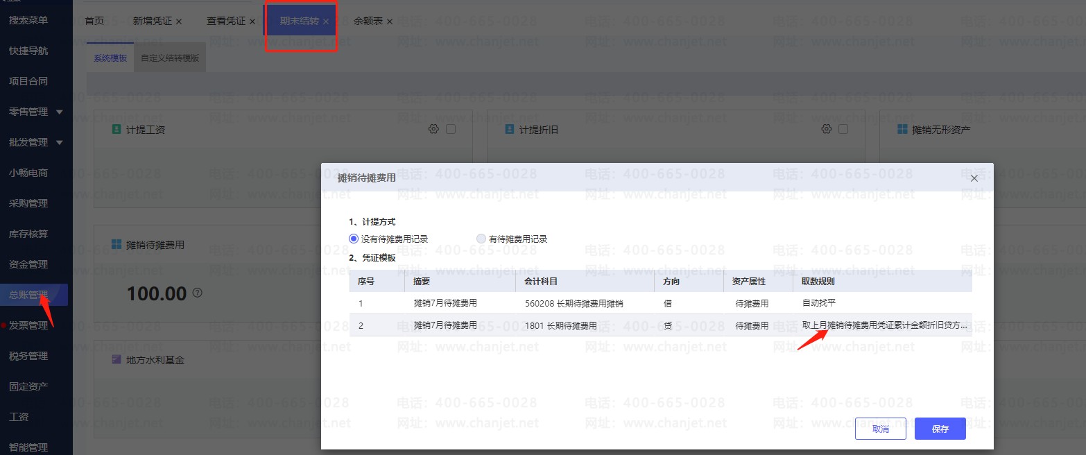 注意:上面两种取数原理都是需要基于长期待摊费用有借方余额,如若①长期待摊费用为0或者有贷方余额②上期摊销费用为0(上期没做摊销),则生成的待摊费用凭证金额为零