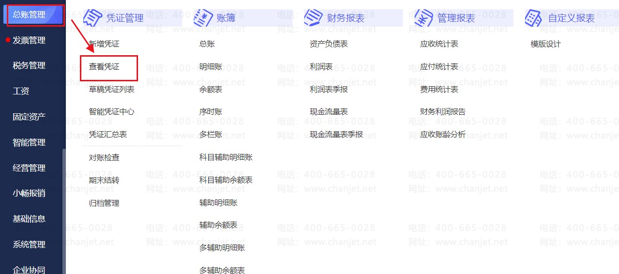 3、发现凭证号是008号凭证,然后去【总账管理】-【查看凭证】