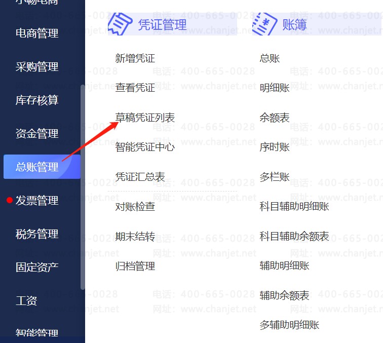 【注意】设置自动的生成凭证后,凭证会自动进入草稿凭证中,想要生成正式的凭证,依然需要从草稿凭证列表里,点生成,在【总账管理】-【草稿凭证列表】。