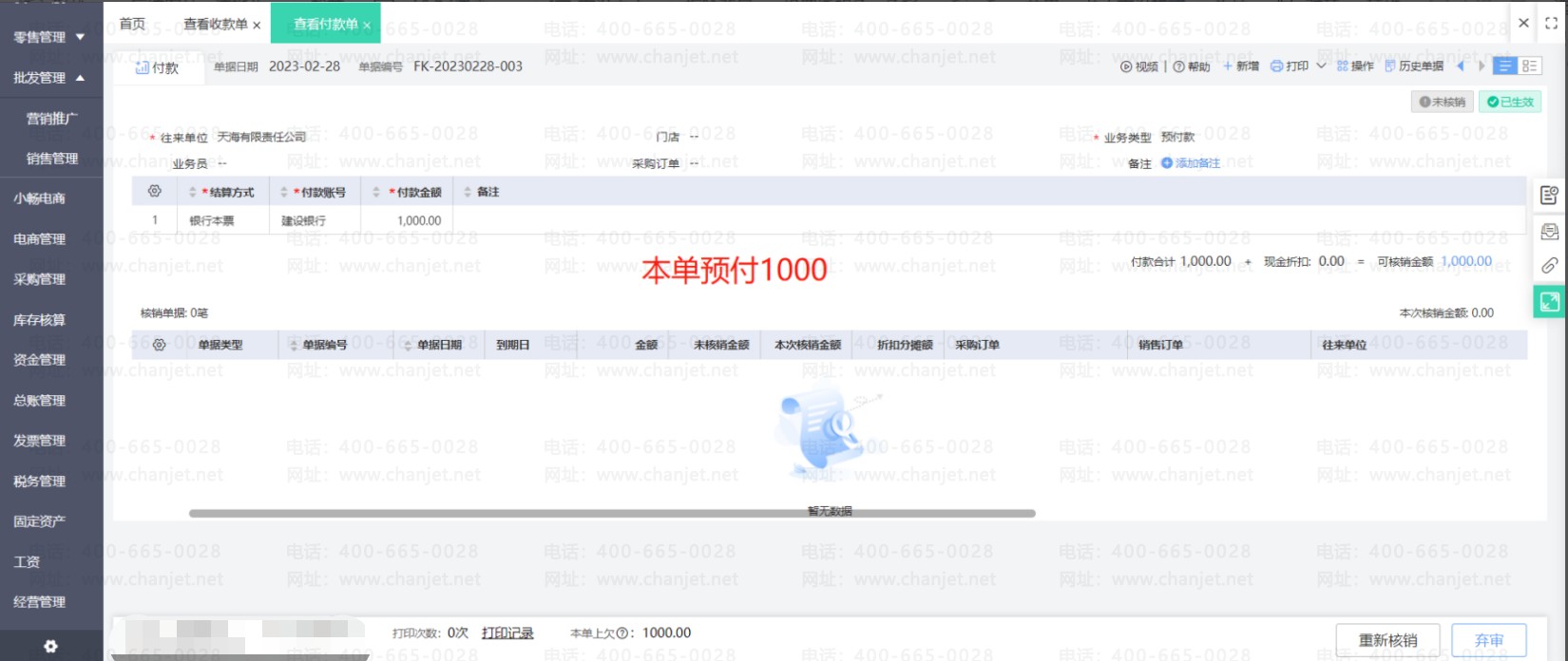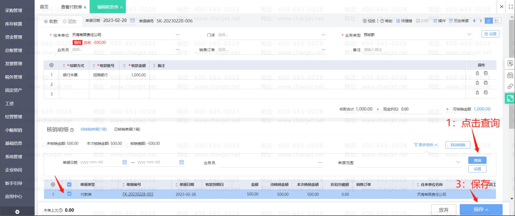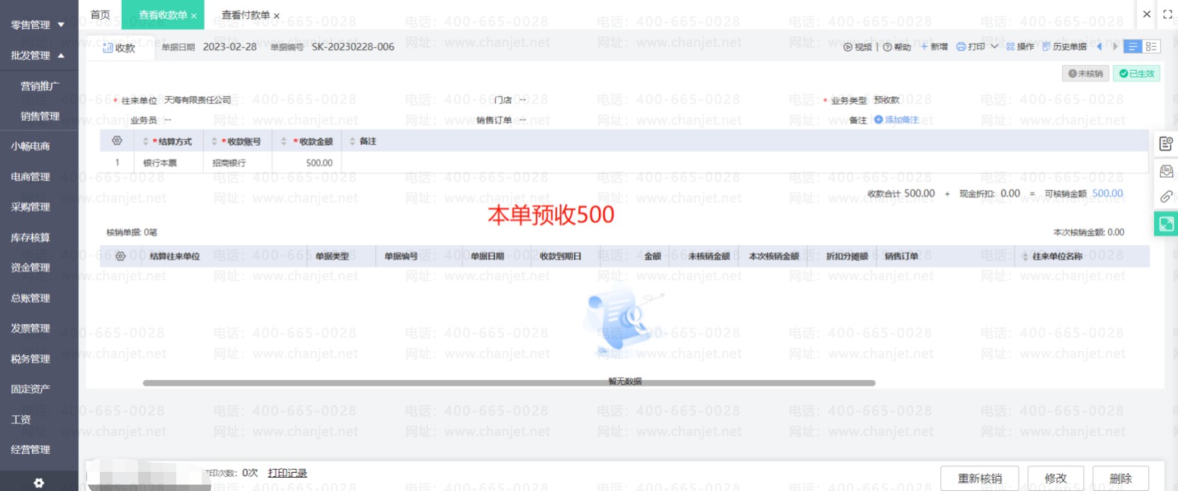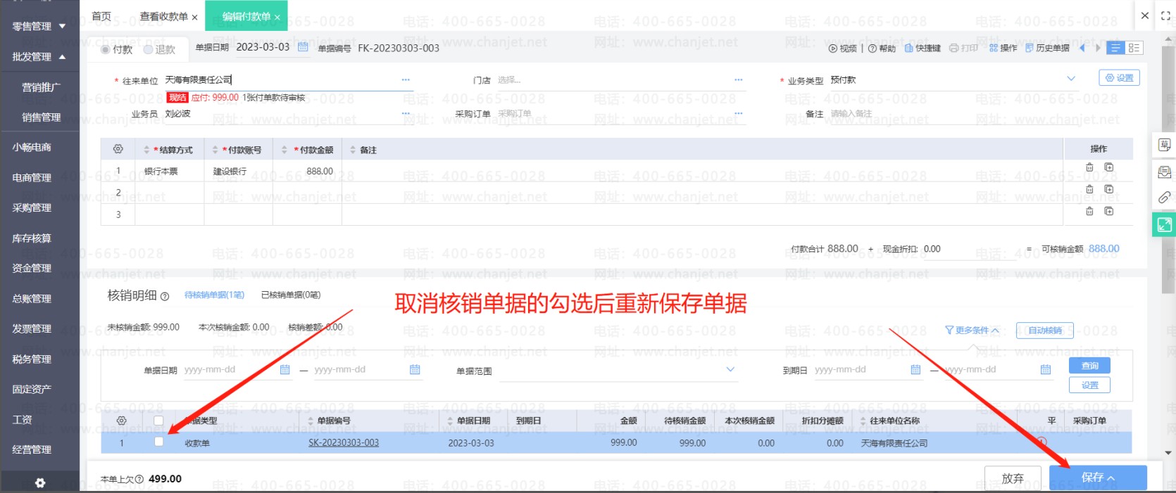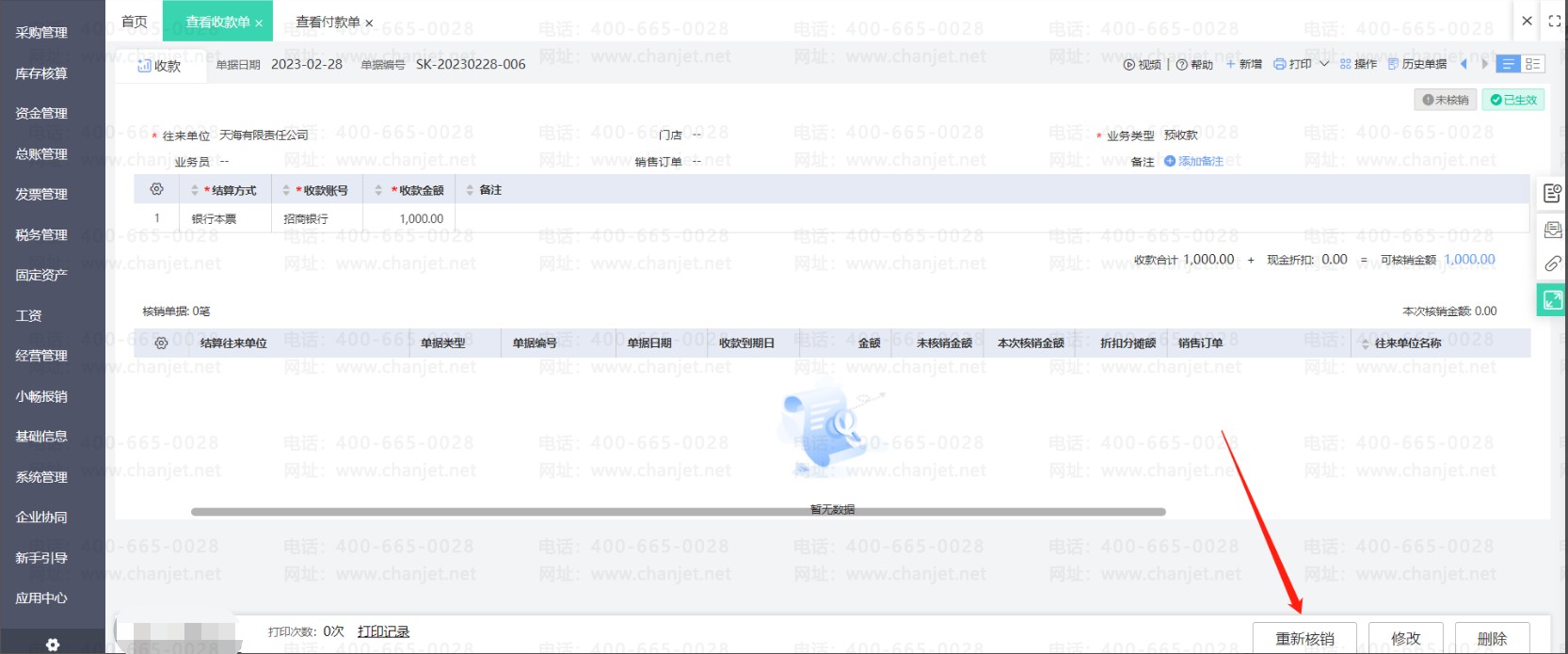预收款单和预付款单核销之后,如果发现核销有误则需要取消核销。