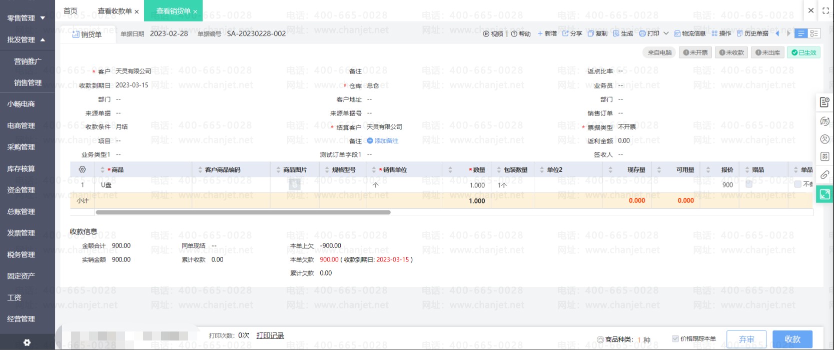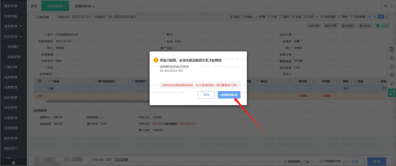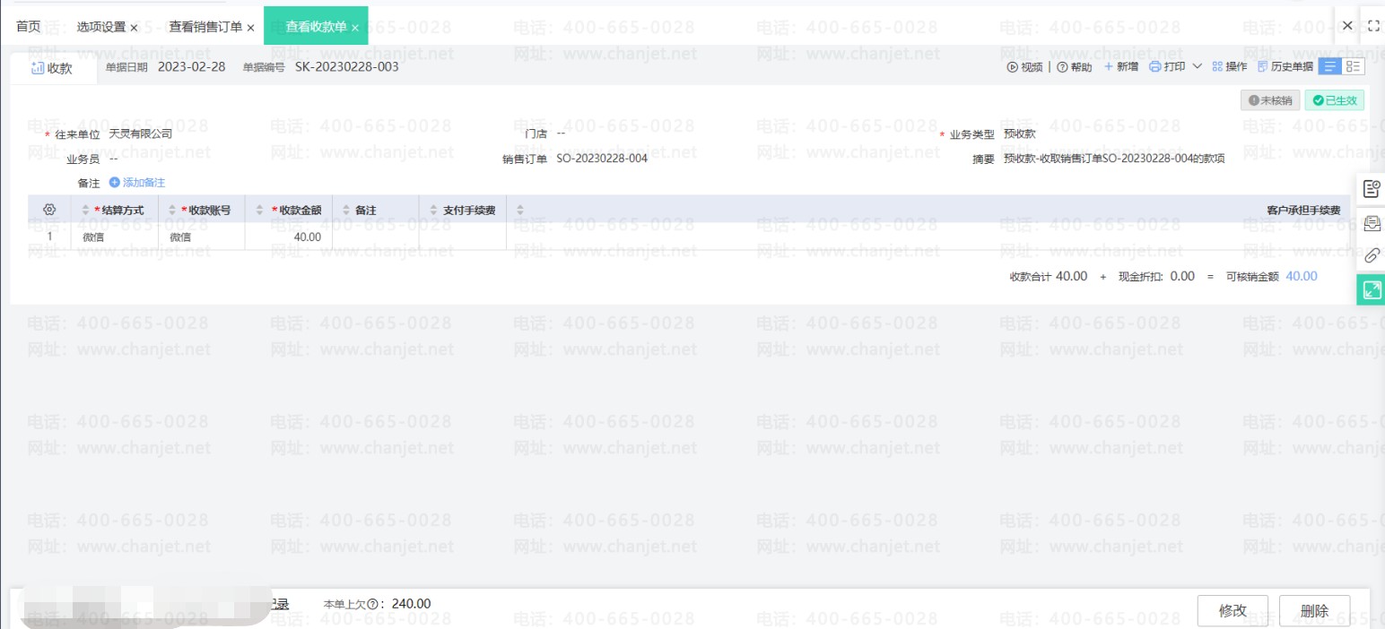 销货单上勾选使用了预收款之后,预收款单和销货单即核销。若之后发现预收款单需要修改一些内容,那么必须要先取消核销之后才能修改预收款单。