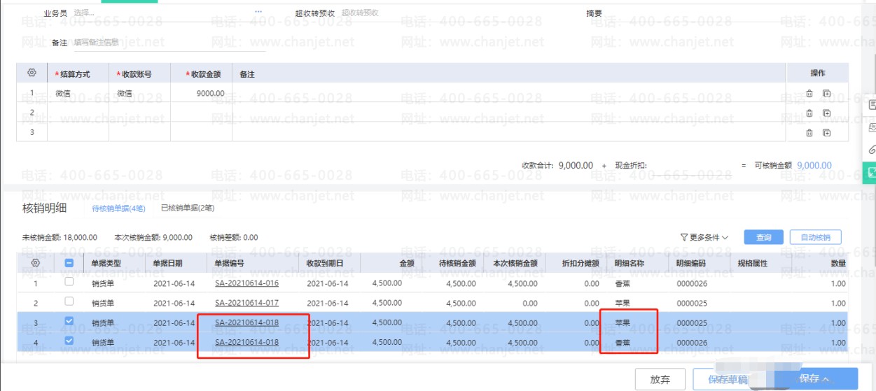 适用于当应收单据有多行明细时,在进行收付款核销时,待核销单据会按明细拆分成多行显示,可以勾选具体明细行进行核销。可以记录收付的是哪个商品的款。