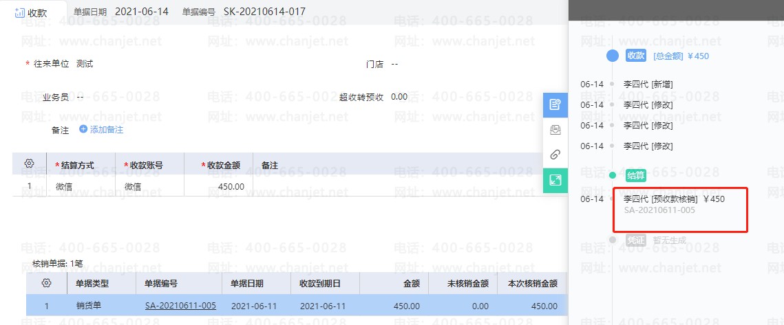 适用于不需要确认收款是针对哪张单据或者哪笔商品,只需要记录是收哪个客户的款项的情况。