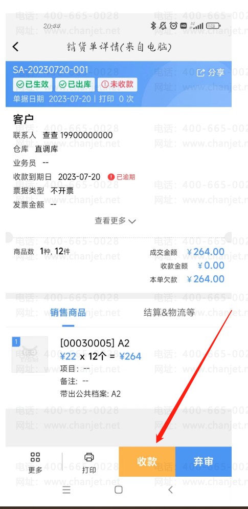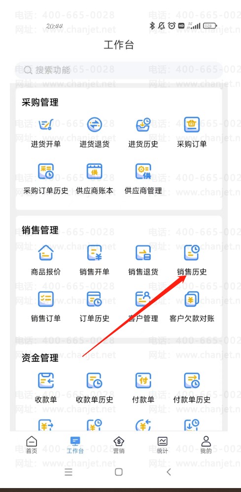 1、进入手机端,点击【工作台】在【销售管理】-【销货历史】中找到需要收款 的单据,点击【收款】按钮收款即可。