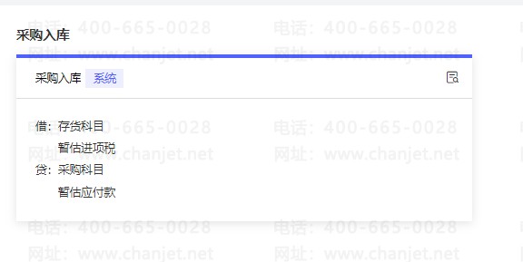当采购流程为分开流程,即进货和入库是分开进行的时候,采购入库单生成凭证为借:存货科目 暂估进项税 贷:采购科目 暂估应付款