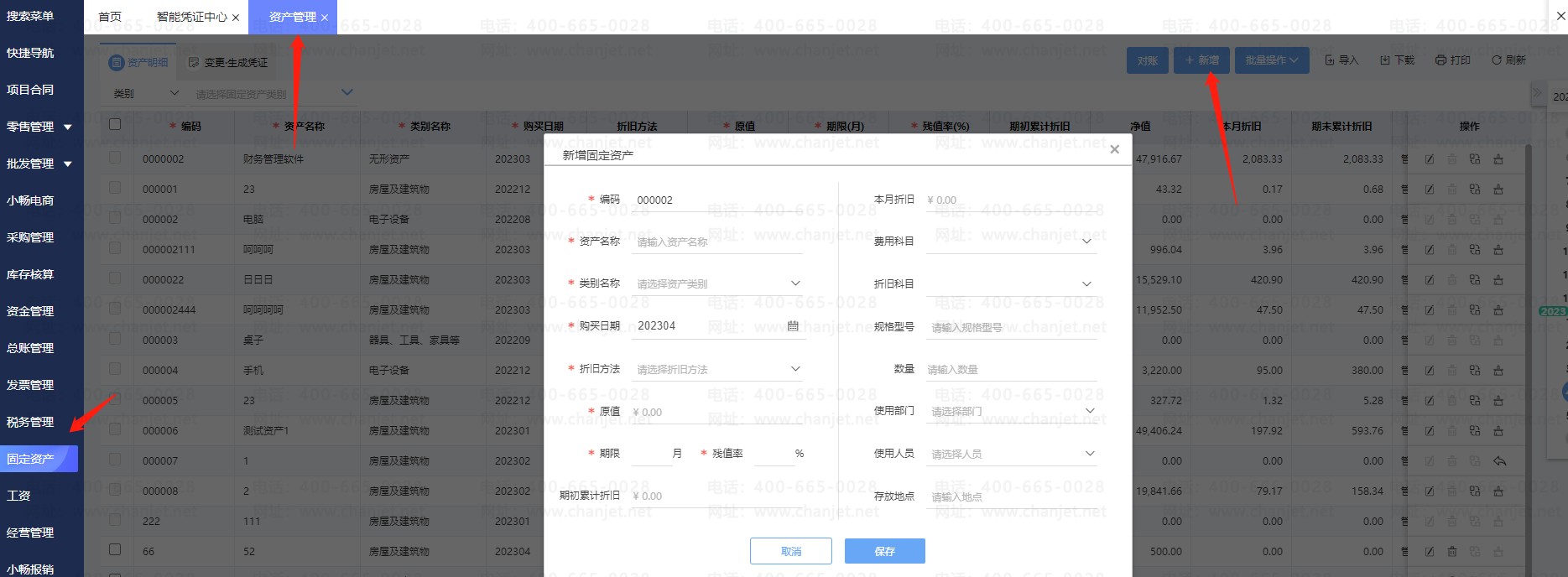 点击【固定资产】-【资产管理】,点击右上角新增,通过维护此固定资产卡片来完成新增的固定资产录入(注意*带是必填项)