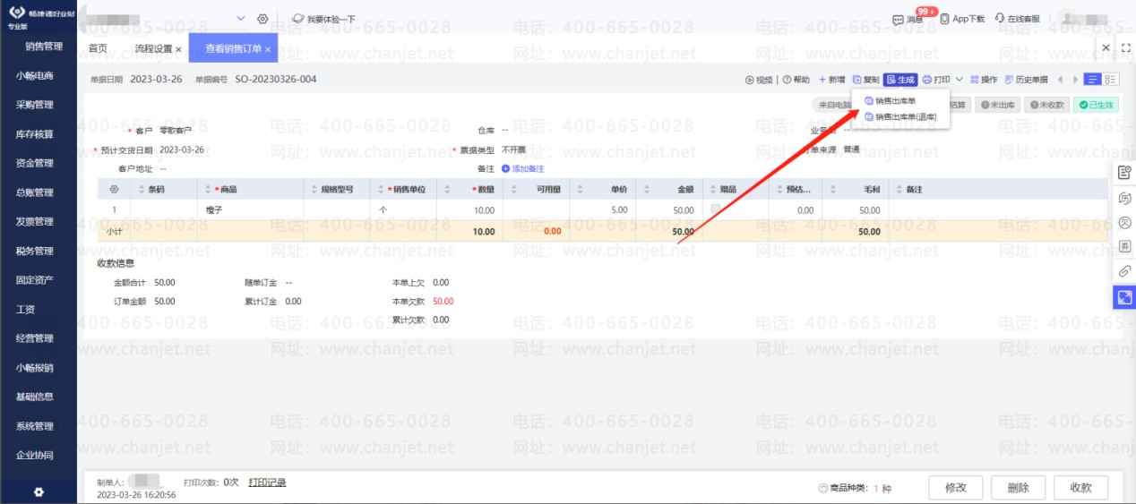 新增一张销售订单,点右上角生单—可生成销售出库单: