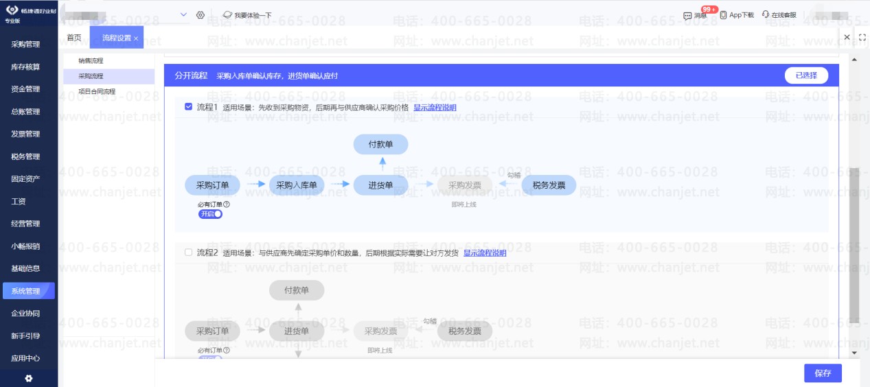 可以设置销售流程、采购流程: