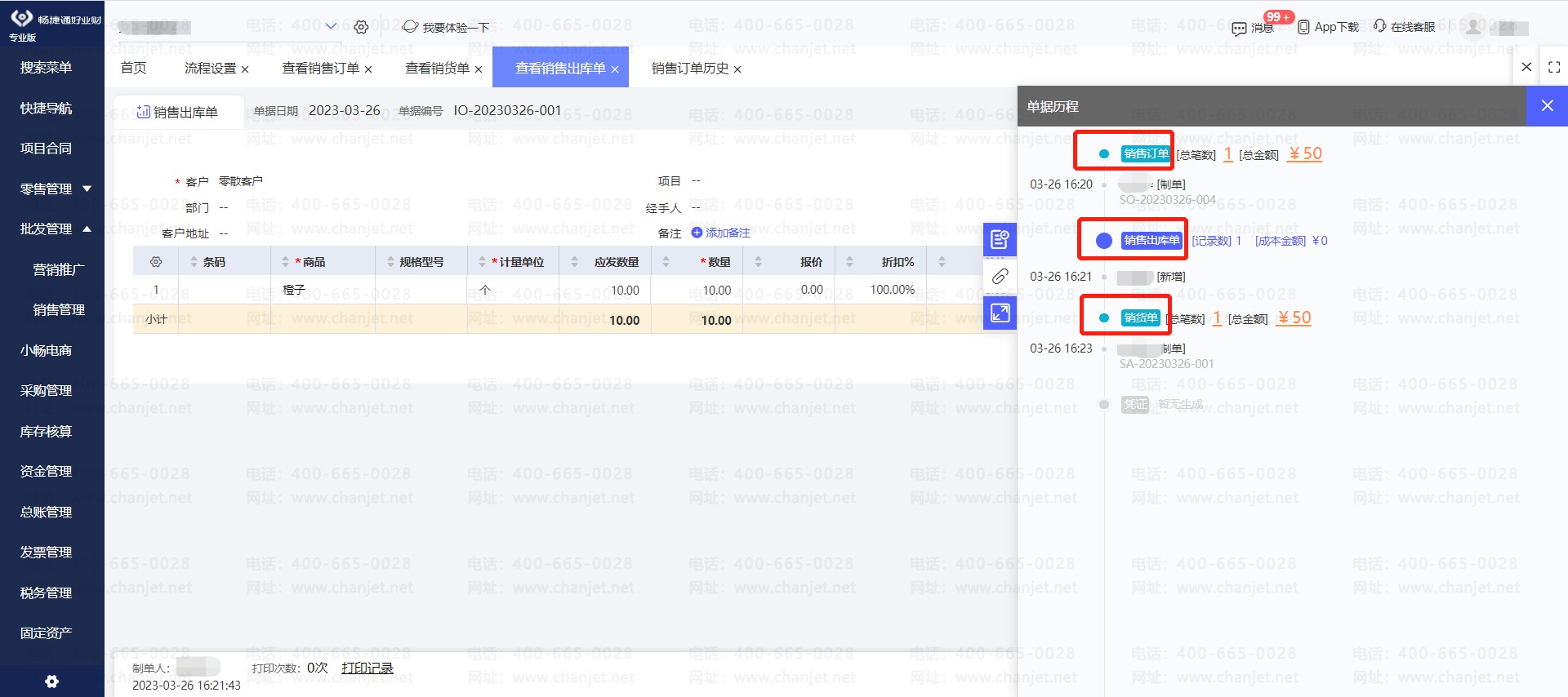 流程1:有订单,先有出库单后有销货单立账