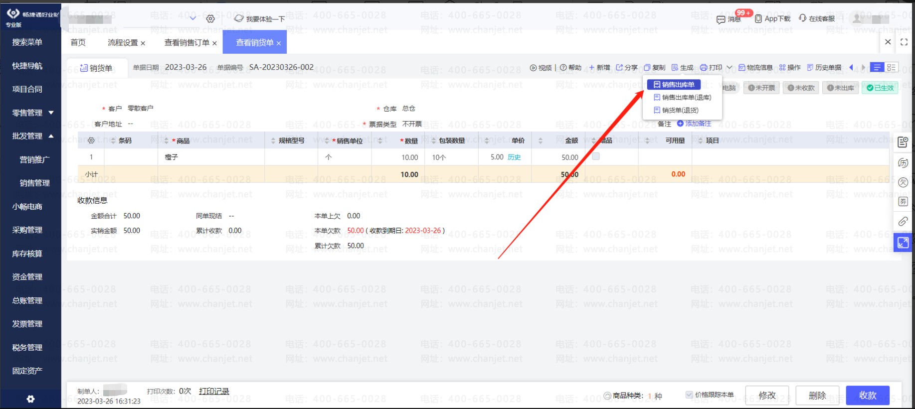 销售出库单再生成销货单确认应收: