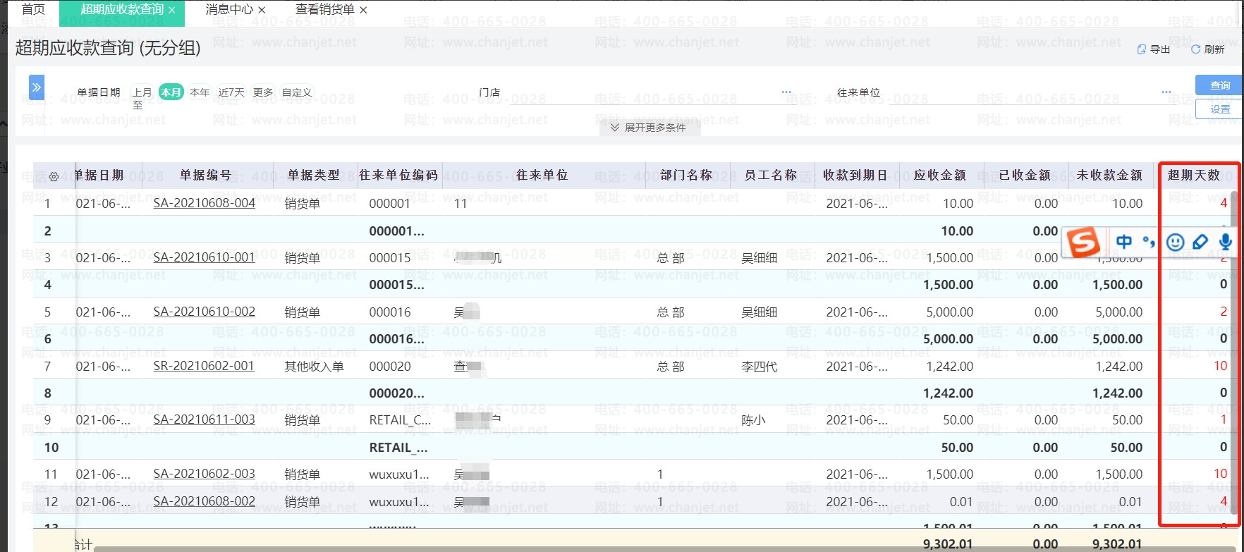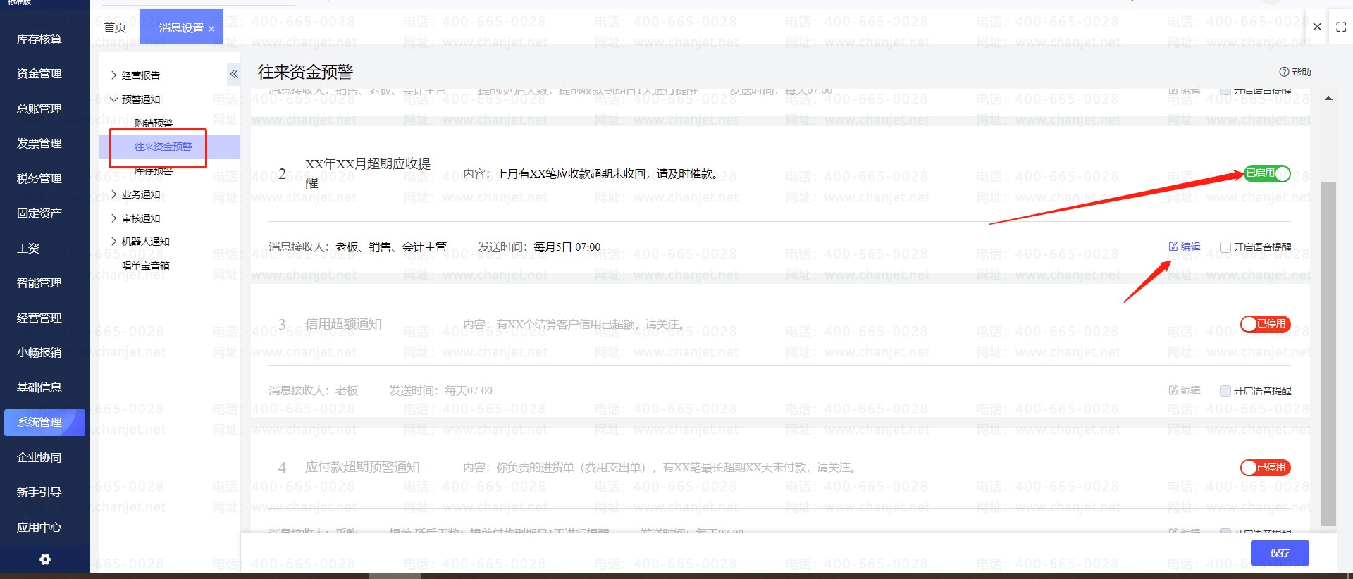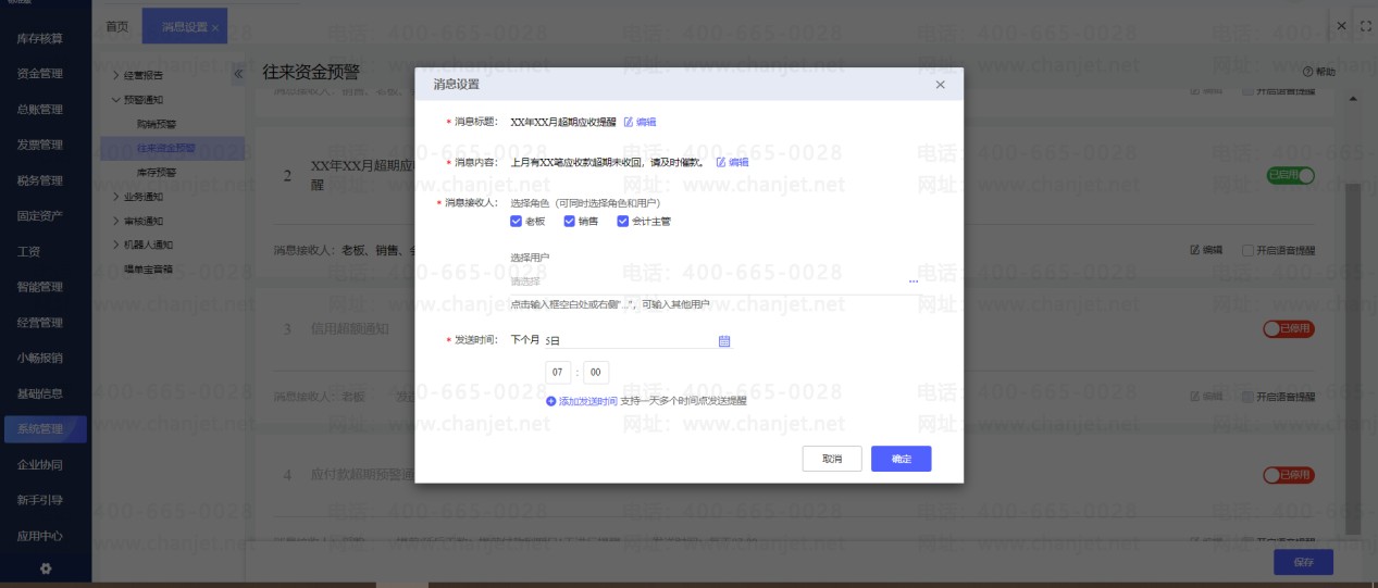 2、系统根据单据的收款到期日,系统会在次月直接发送消息,提醒有多少笔应收款超期未收回。