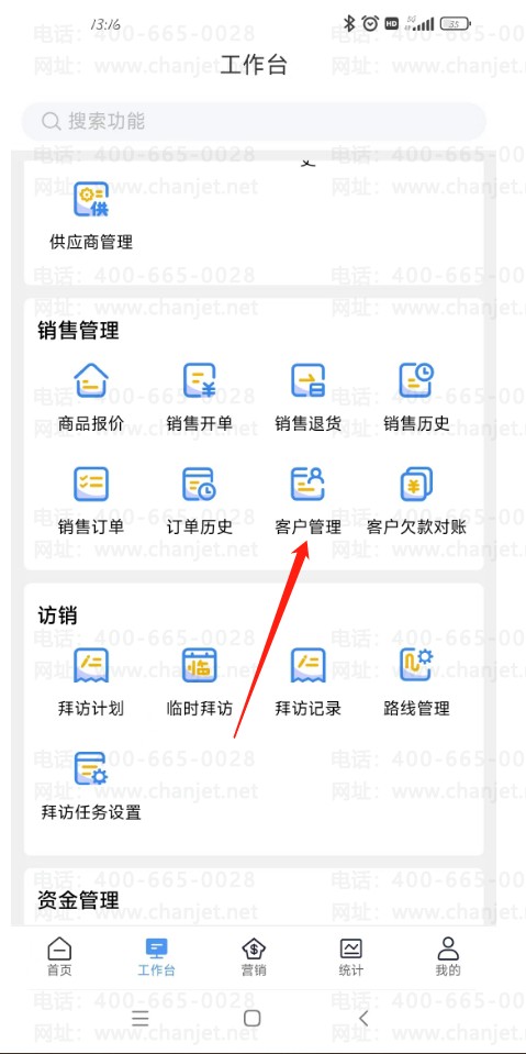 进入【首页】-【工作台】-【销售管理】,进入客户管理界面,步骤同上(应付 预付期初同理)