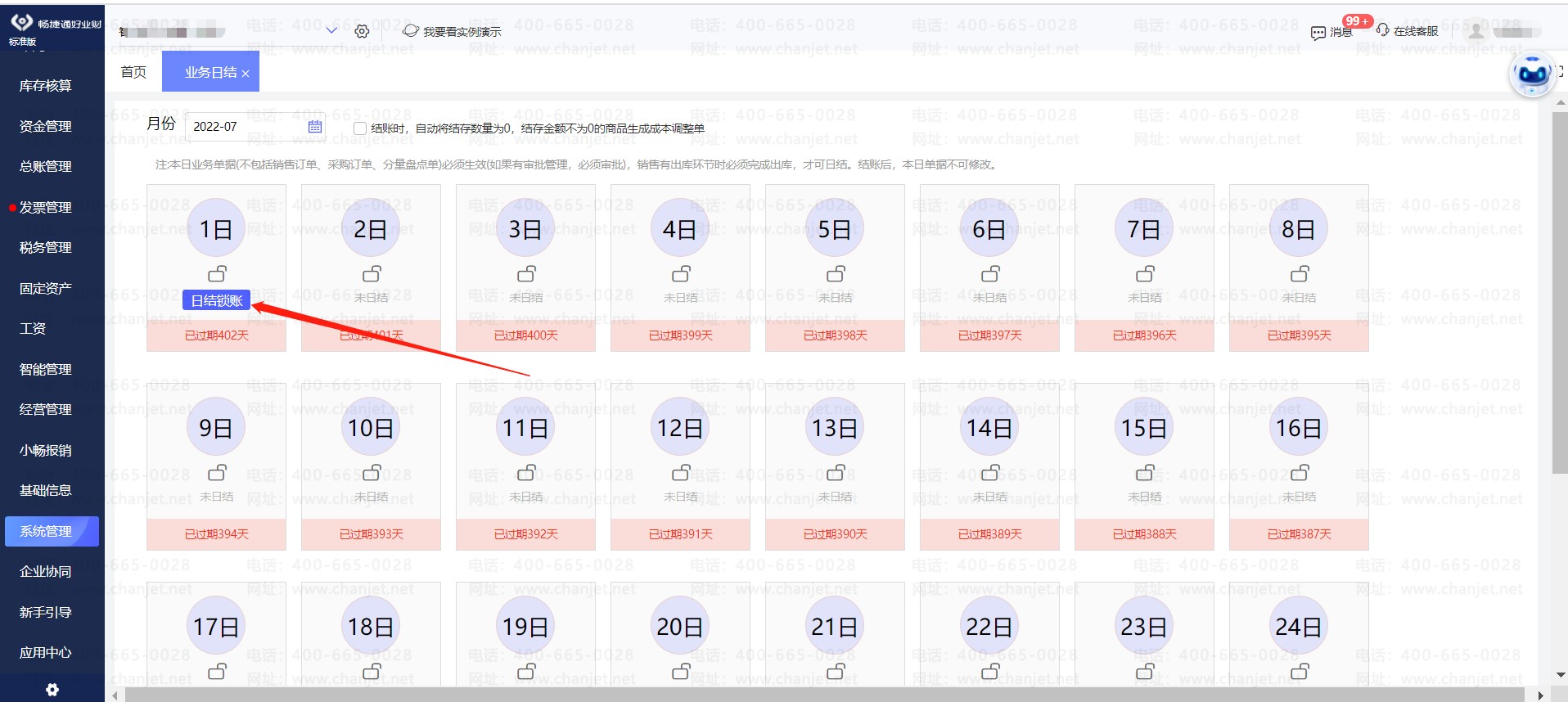 路径:【系统管理】-【业务日结】