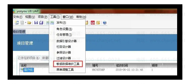 登录 UAP 系统,点击顶部菜单栏【工具】—【敏感数据维护工具】,系统会显示已预置的敏感数据(如存货、供应商)。