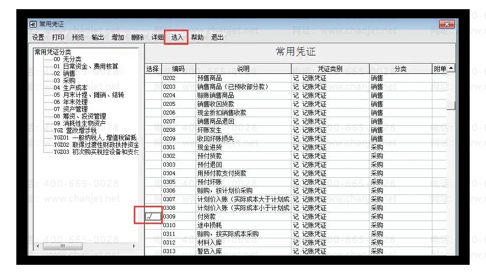 3、直接输入常用凭证编码或者点击后面选择按钮