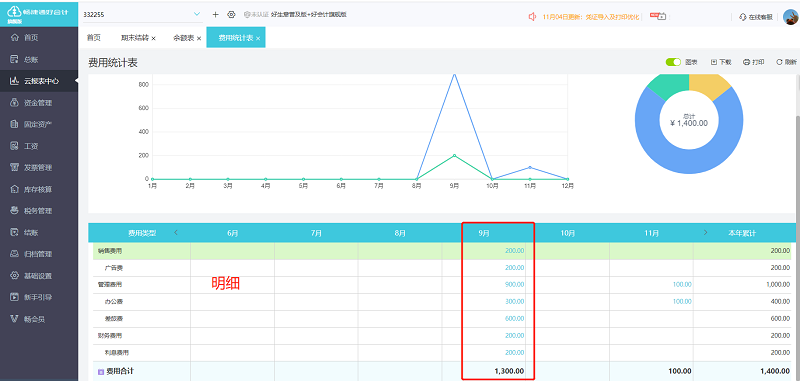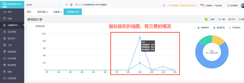 费用统计表的数据是按照余额表取数据,将销售费用、管理费用、财务费用统计在一张表格列示,方便查询
