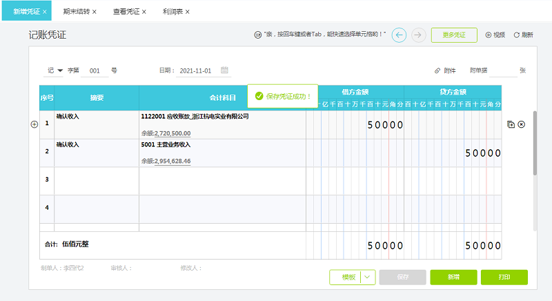 2.确认收入和结转收入的分录在一张凭证中,利润表无法取到数据
