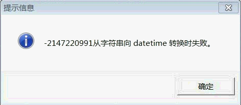 问题现象:用友T3报错:-2147110991从字符串向 datetime转换时失败,错误提示界面如下图所示: