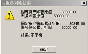 问题现象:用友财务软件总账与固定资产对账不平,一般错误提示如下?从而影响固定资产系统的结账?【此方案适用于用友U8erp,用友T6erp,用友T3用友通固定资产模块】