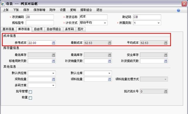 参考成本、最新成本、平均成本均为“存货档案”-“库存信息”中的成本,其中参考成本为自己手工录入,最新成本和平均成本为系统根据入库单自动维护的成本