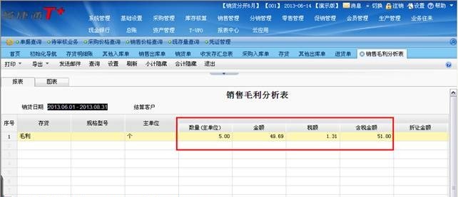 畅捷通T+财务软件的销售毛利表上的数量、金额、含税金额直接取已审核的进货单/采购发票(具体看以进货单立账还是采购发票立账)上的数,如下图所示: