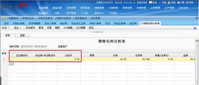此时,销售毛利分析表上的“总成本=已出库成本+未出库/未记账成本”,