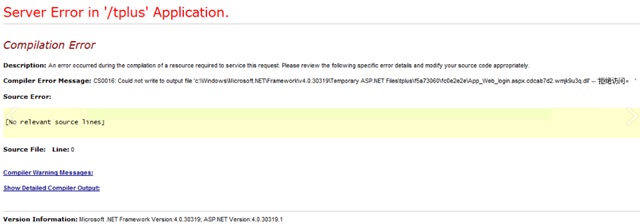 问题现象:用友T+V12.0版本财务管理软件,打开软件时提示:c:\Windows\Microsoft.NET\Framework\v4.0.30319\Temporary ASP.NET Files\tplus\f5a73060\fc0e2e2e\App_Web_login.aspx.cdcab7d2.7pfse7ko.dll 访问被拒绝,之前能够正常使用,突然出现这种报错?