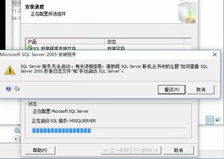 安装MSSQLserver2005,安装过程中 提示:sql server服务无法启动有关详细信息请参阅sql server联机丛书中的主题,如下图所示: