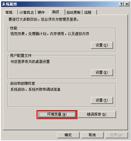 右击“我的电脑”-“属性”-“高级”-“环境变量”,