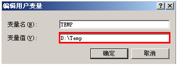 先选择 TEMP 点击编辑,修改为D:\temp,再选择TMP点击编辑,修改为D:\temp(修改时需要注意在英文输入状态,切勿将D: 输成 D:)