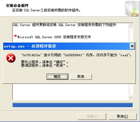 今天有一个用户2005数据库安装问题,如下:安装MSSQLSERVER2005数据库时提示 setup.exe 应用程序错误,错误提示的图片如下: