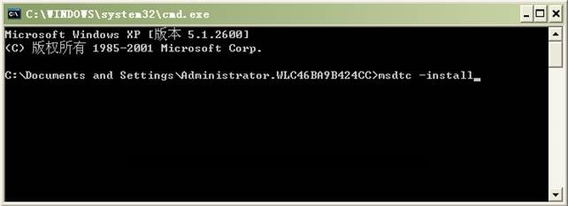 3)重新安装MSDTC服务:点击“开始”-“运行”,输入cmd;接着在命令框中输入安装命令“msdtc –install”然后回车