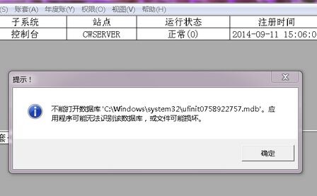 今天有朋友咨询用友财务软件,在对用友通T3进行年结的时候提示:“不能打开数据库C:\windows\system32\ufinit0589031399.mdb应用程序可能无法识别该数据库或文件可能损坏”。