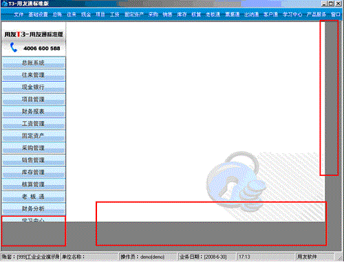 如下图所示,用友通T3登录界面,右边多了好多灰色区域,而且严重错位了,软件操作界面少了很多功能菜单?