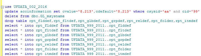 2. 删除新年度账(2017),然后下载对应版本补丁,对所有账套执行补丁脚本