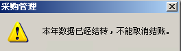 问题分析:如果直接删除年度账,再取消采购模块的12月份结账,则会有此提示。