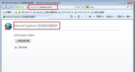 按照上述方法设置后,我们打开淘宝网: www.taobao.com 时会发现无法打开了。