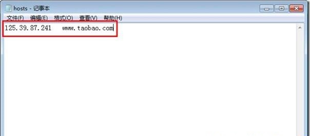 例如:我需要将 www.taobao.com 域名解析到 125.39.87.241 ,那么我可以将HOSTS文件修改为: