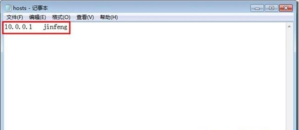 例如局域网服务器计算机名为:jinfeng,对应的服务器局域网IP为10.0.0.1,客户端在访问T+时,希望能通过 http://jinfeng/tplus/login.aspx 来访问,那么我们建议将hosts文件修改为: