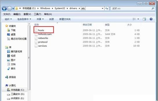 b、进入C:\WINDOWS\system32\drivers\etc右击HOSTS文件,选择打开,在打开方式中选择用记事本方式打开,