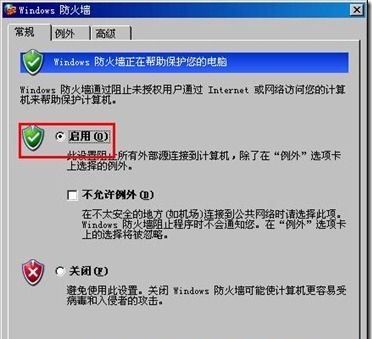 (2)在“常规”页签中选中“启用”,启用windows防火墙;
