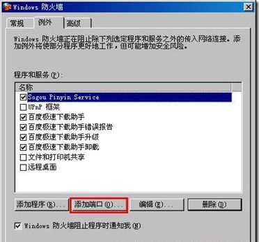 (3)在“例外”页签添加对应的端口,如下图所示(比如我的T+设置的端口是8080,那么此处我就添加8080端口):