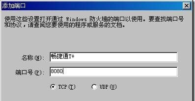 (6)选择相应的协议,如添加T+软件的8080端口,我们选择TCP,在我写本地端口处输入8080,
