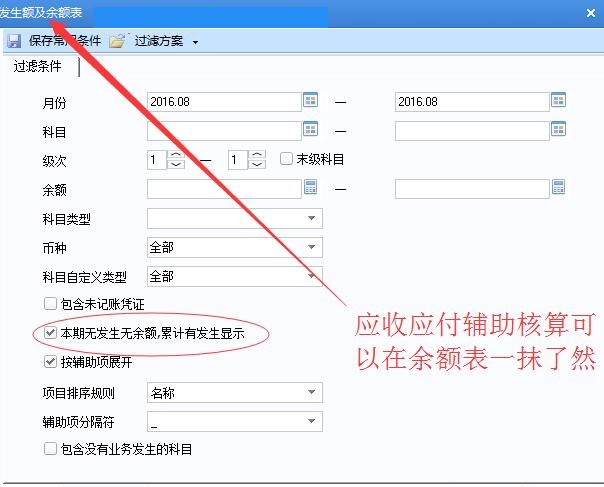 3、查询可以在总账-帐表下多辅助账查询,自定义显示行列及先后顺序